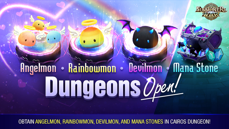 [Angelmon/ Rainbowmon/ Devilmon/ Mana Stone Dungeons] will be open during the event period.