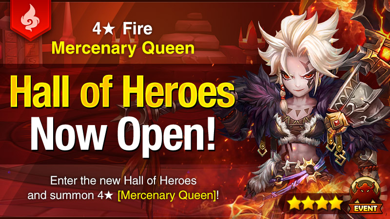 This time, the 4★ [Mercenary Queen] with Fire Attribute will be awaiting you at the Hall of Heroes!