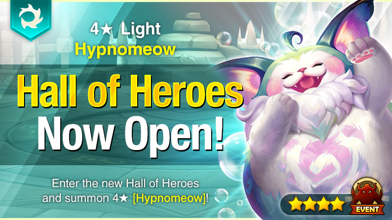This time, the 4★ [Hypnomeow] with Light Attribute will be awaiting you at the Hall of Heroes!