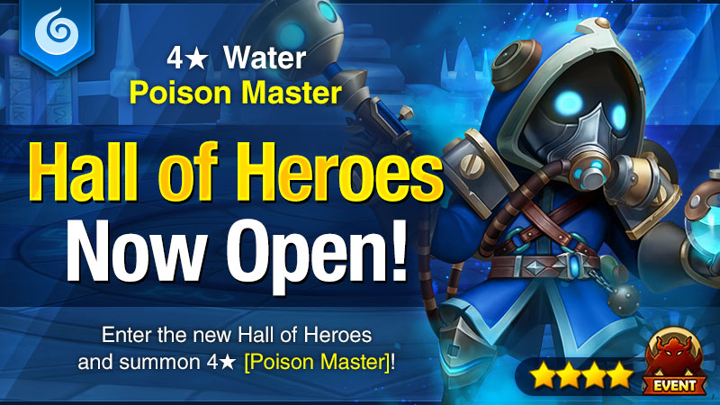 This time, the 4★ [Poison Master] with Water Attribute will be awaiting you at the Hall of Heroes!