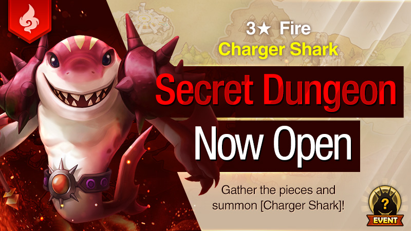 Meet the [Charger Shark] with Fire Attribute in the Secret Dungeon from Mar. 20, 12:00 PM to Mar. 22, 11:59 PM!