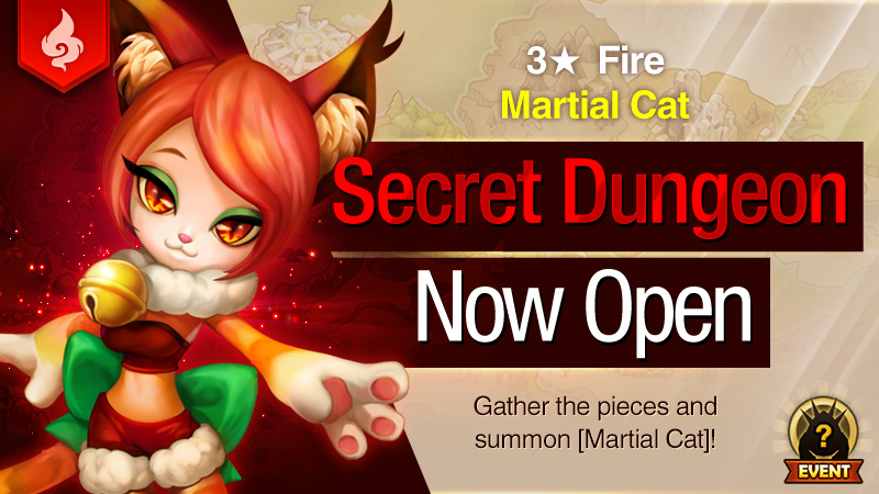 Meet the [Martial Cat] with Fire Attribute in the Secret Dungeon from Aug. 4th 12pm to Aug. 7th 12am.
