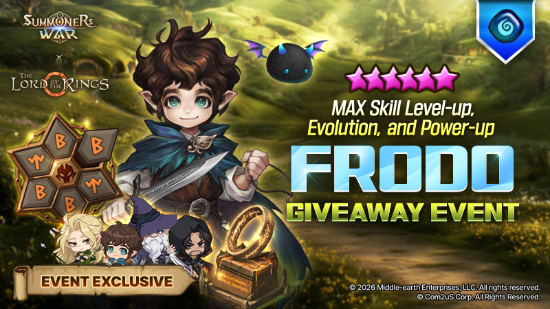 The [Default 5★ MAX Skill Level-up, Evolution, Power-up Frodo Giveaway Event] will go live.