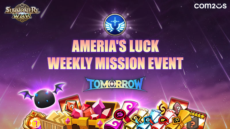 The ★Ameria's Luck Weekly Mission★ will go live to celebrate the Summoners War: Tomorrow Update.